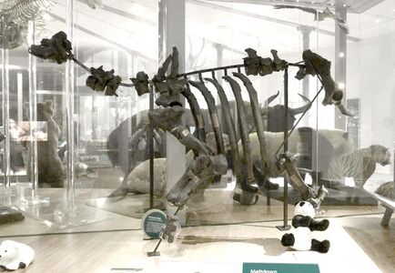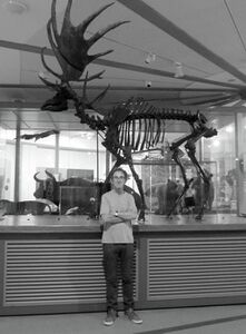 Dickinson was involved in taxidermic repairs during the preparations for the re-opening of Leeds City Museum at the former Leeds Mechanics Institute in 2008. He "produced a number of the new mounts for the Life on Earth gallery",[11]:162 including for the Leeds Irish Elk and Armley Hippo skeletons,[3][nb 1] the latter of which was over 100,000 years old.[12][13] Dickinson also repaired the 200-year-old mounted polar bear skin which was donated to the museum by Leeds Philosophical and Literary Society in 1828. He gave it a "cold shower clean-up" outdoors, then retouched its face and "other bare patches", and remounted it. It is one of the museum's "most prized exhibits".[14] Dickinson said, "There is a real sense of achievement when you see items on public display for scientific and educational purposes.[3]