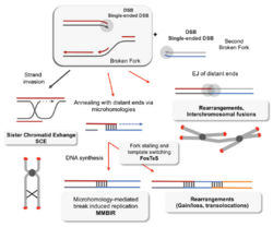 - ↑ "DNA repair: common approaches to fixing double-strand breaks". Current Biology 19 (13): R523–5. July 2009. doi:10.1016/j.cub.2009.06.009. PMID 19602417.