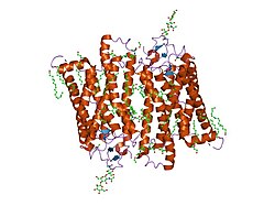 - ↑ "Rhodopsin and bacteriorhodopsin: structure-function relationships". FEBS Letters 148 (2): 179–191. November 1982. doi:10.1016/0014-5793(82)80805-3. PMID 6759163.