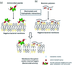 - ↑ 3.0 3.1 3.2 3.3 3.4 3.5 3.6 Song, Jooyoung; Jang, Jyongsik (2014-01-01). "Antimicrobial polymer nanostructures: Synthetic route, mechanism of action and perspective" (in en). Advances in Colloid and Interface Science 203: 37–50. doi:10.1016/j.cis.2013.11.007. ISSN 0001-8686. PMID 24332622. https://www.sciencedirect.com/science/article/abs/pii/S0001868613001607.