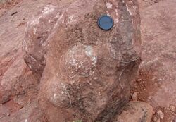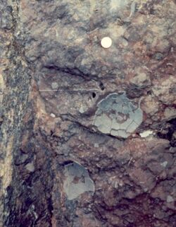 An alternative subdivision uses Grey Garumnian at the base, overlain by Lower Red Garumnian and Vallcebre Limestone at the top.[32] The Vallcebre limestone is laterally equivalent with another described unit, the Suterranya Limestone.[33] Pujalte and Schmitz in 2005 defined another member, the Claret Conglomerate, as representative of a conglomeratic bed inside the Claret Formation.[2]