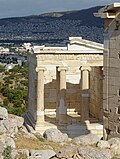 Ancient Greek portico with Ionic columns of the Temple of Athena Nike (Athens, Greece)