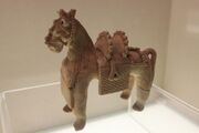 Haniwa horse statuette, complete with saddle and stirrups, 6th century, Kofun period, Japan .