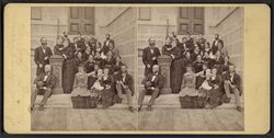 The university was founded as coeducational and racially integrated: "open to men and women, white and black."[33] President Peck stated at the opening ceremonies, "The conditions of admission shall be equal to all persons... there shall be no invidious discrimination here against woman.... brains and heart shall have a fair chance... "[37] Syracuse implemented this policy with a high proportion of women students for its era. In the College of Liberal Arts, the ratio between male and female students during the 19th century was approximately even. The College of Fine Arts was predominantly female, while lower ratios of women enrolled in the College of Medicine and the College of Law.[37] Men and women were taught together in the same courses, and many extra-curricular activities were coeducational as well. Syracuse also developed "women-only" organizations and clubs.[37]