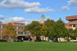 Also called "North Campus," the Main Campus contains nearly all academic buildings and residence halls. Its centerpiece is The Kenneth A. Shaw Quadrangle, more affectionately known as "The Quad",[69] which is surrounded by academic and administrative buildings, including Hendricks Chapel.[70][71] The North Campus represents a large portion of the University Hill neighborhood. Buses run to South Campus, as well as downtown Syracuse and other locations in the city.[72]