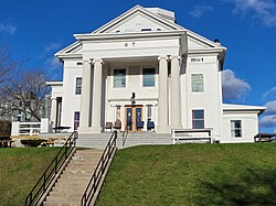 The Comstock Tract Buildings, a historic district of older buildings on the campus, was listed on the National Register of Historic Places in 1980.[73] Three buildings on campus—the Crouse Memorial College and the Hall of Languages, and the Pi Chapter House of Psi Upsilon Fraternity—are individually listed on the National Register.[74]