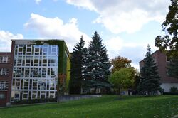 Since 2009, the Syracuse Center of Excellence in Environmental and Energy Systems, led by Syracuse University in partnership with Clarkson University and the State University of New York College of Environmental Science and Forestry, creates innovations in environmental and energy technologies that improve human health and productivity, security, and sustainability in urban and built environments.[97][98] The Paul Robeson Performing Arts Company and the Community Folk Art Center will also be located downtown. On March 31, 2006, the university and the city announced an initiative to connect the main campus of the university with the arts and culture areas of downtown Syracuse and The Warehouse.[99] Using natural gas, the Green Data Center generates its electricity on-site, providing cooling for servers and for a neighboring building.[100]