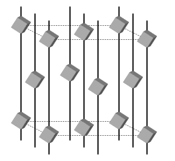 The scheme with the staggered uranium cubes was first used by Diebner in 1943 in the large-scale test G3 at the test facility of the Army Weapons Office in Gottow. Uranium plates had previously been used in the Berlin experiments, but with poorer results. Originally, the physicists wanted to test a construction made of suspended uranium cylinders, comparable to today's fuel rods. However, there was no longer enough time to produce such cylinders and the researchers therefore decided to copy Diebner's design.[16] Ideally, the cubes should have had an edge length of between six and seven centimeters, but the scientists had to use the smaller cubes from Diebner's last experiments and therefore cut the uranium plates to the same size.[12]