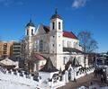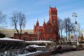 Clockwise from top: Minsk business district (Pieramožcaŭ Avenue), the Church of Sts. Peter and Paul, Railway Station Square, the Red Church, National Opera and Ballet Theatre, and Minsk City Hall | |
