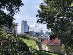The city was initially built on the hills, which allowed for defensive fortifications, and the western parts of the city are the most hilly.