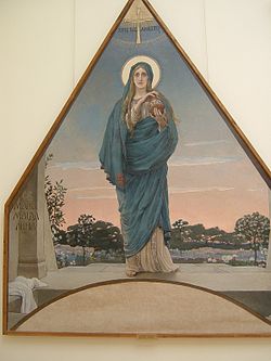 A different, but not necessarily conflicting legend concerns Mary Magdalene's efforts to spread the Gospel. According to this tradition, after the Ascension of Jesus, Mary went to the Emperor of Rome and greeted him with "Christ has risen," whereupon he pointed to an egg on his table and stated, "Christ has no more risen than that egg is red." After making this statement it is said the egg immediately turned blood red.[52][53]