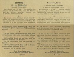It is forbidden to slaughter a domestic animal in any other way, except to render the animal insensible immediately before bleeding. Whenever religious reasons so demand, let it be allowed by the Ministry of Agriculture, in such a way, that the animal is rendered insensible immediately after the arteries have been swiftly cut, but in such a case the veterinarian of the institution must be present personally to supervise the slaughtering[59]