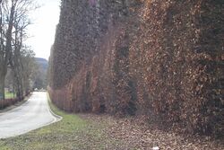 The hedge is noted in the Guinness World Records as the tallest and longest hedge on earth, reaching 30 metres (98 feet) in height and 530 metres (1,740 feet) in length. It is usually trimmed once every ten years, although the most recent trim, which took place in late 2019, was the first in almost 20 years.[1]