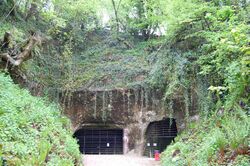 Quarrying at the site ceased in the early 20th century when a new quarry was opened nearby. Some caves were then used to cultivate mushrooms and others were used to dump waste from the new quarry. Guided tours of the caves are now run from spring to autumn.[11] The caves provide a haven for hibernating bats in winter. The presence of the bats, along with the opportunities to see the geological profiles that quarry faces allow, caused the old and new quarries to be declared a Site of Special Scientific Interest. The very rare Bechstein's bat and the greater and lesser horseshoe bats along with five other bat species are all found in the caves.[12]