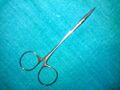 •Silcock's needle holder | -do-; has a catch and is used for heavier gauge needles; used mainly for skin, muscle and corneal incisions |