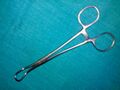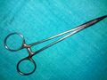 •Artery forceps (haemostat) | medium-sized, with a serrated tip and a catch; used to hold bleeding vessels and compress them in order to make them stop bleeding and also to hold or crush structures. |