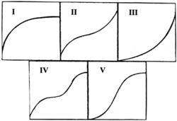 Classification of Sorption Isotherms by Brunauer Type I through V.