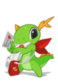 Konqi is the mascot of KDE. He is a cheerful green cartoon dragon. He was first introduced In April 1999, as the new animated assistant of KDE Help Center and later became KDE's mascot in version 3.x. Recognized as part of the KDE community's identity, he appears in KDE software's about dialogue, printed materials, conference presentations, as well as on many of KDE's websites. His former version was designed by Stefan Spatz and the current version was designed by Tyson Tan.