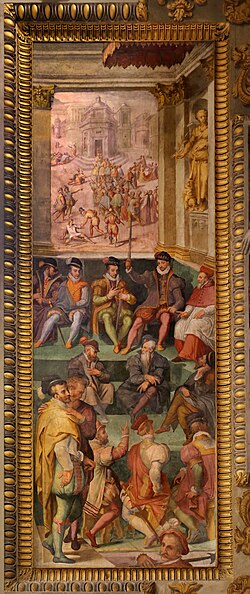 - ↑ Howe, E. "Architecture in Vasari's 'Massacre of the Huguenots'," Journal of the Warburg and Courtauld Institutes, Vol. 39, 1976 (1976), pp. 258–261 JSTOR 751147