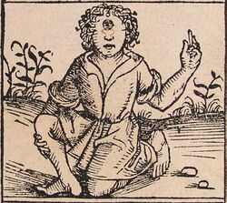 The Arimaspi (also Arimaspians, Arimaspos, and Arimaspoi; Ancient Greek:, Ἀριμασποί) were a legendary tribe of one-eyed people of northern Scythia who lived in the foothills of the Riphean Mountains, variously identified with the Ural Mountains or the Carpathians.[1] All tales of their struggles with the gold-guarding griffins in the Hyperborean lands near the cave of Boreas, the North Wind (Geskleithron), had their origin in a lost work by Aristeas, reported in Herodotus.