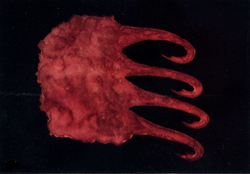 - ↑ Tillett saw here only the "brown-red swirls."[7] An especially powerful class of this kind of thought-forms takes on "the appearance of a nebulous octopus, with long, winding, clinging tentacles, striving to wrap around the other person," and to drag him toward the aura of creator.[43]